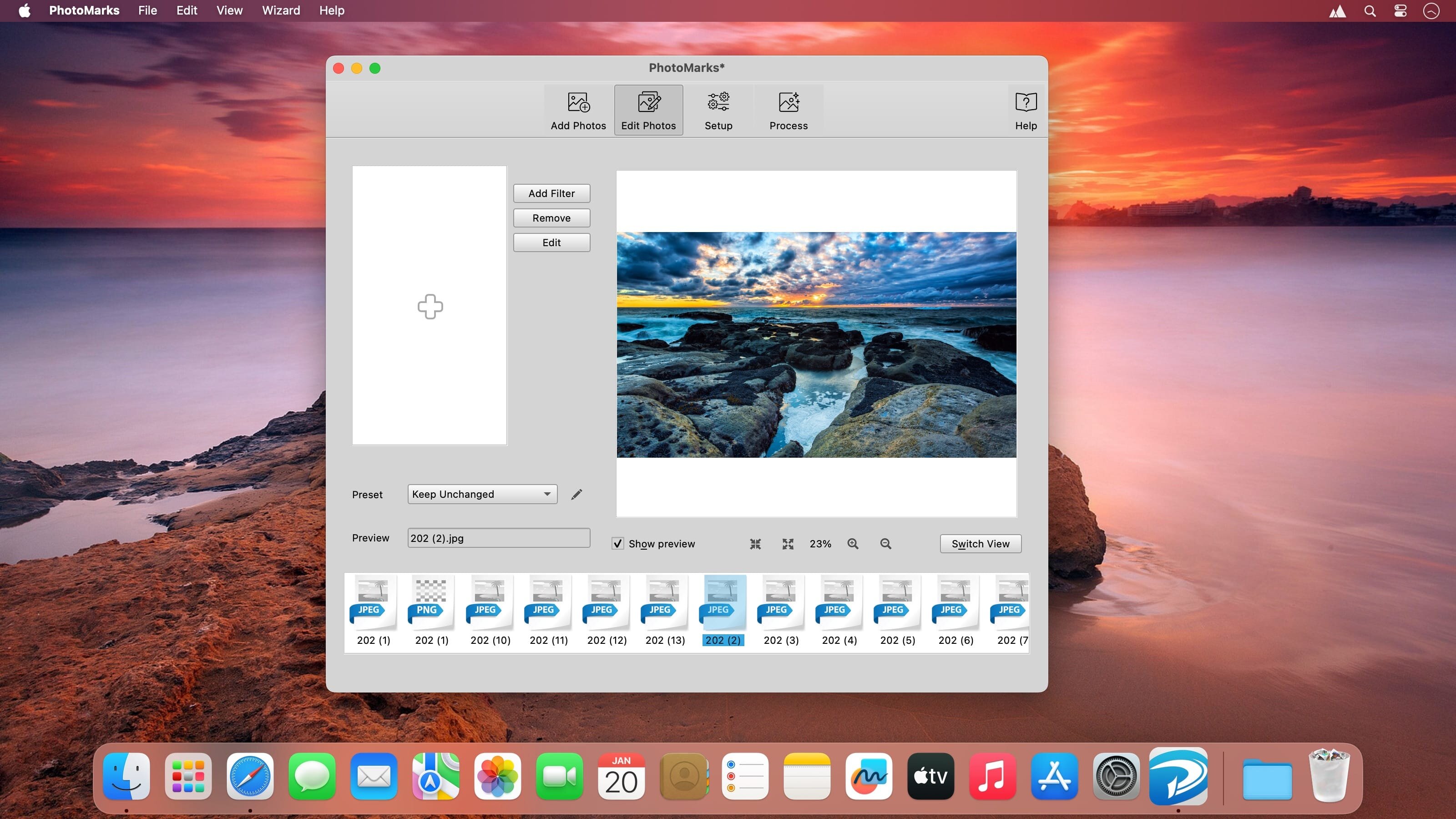 PhotoMarks - полнофункциональное решение для визуального создания водяных знаков для ваших изображений с авторскими правами в пакетном режиме. Зачем использовать сложные, общего использования редактора фотографий, когда вы можете использовать легкий, специально построенный инструмент для выполнения той же задачи?