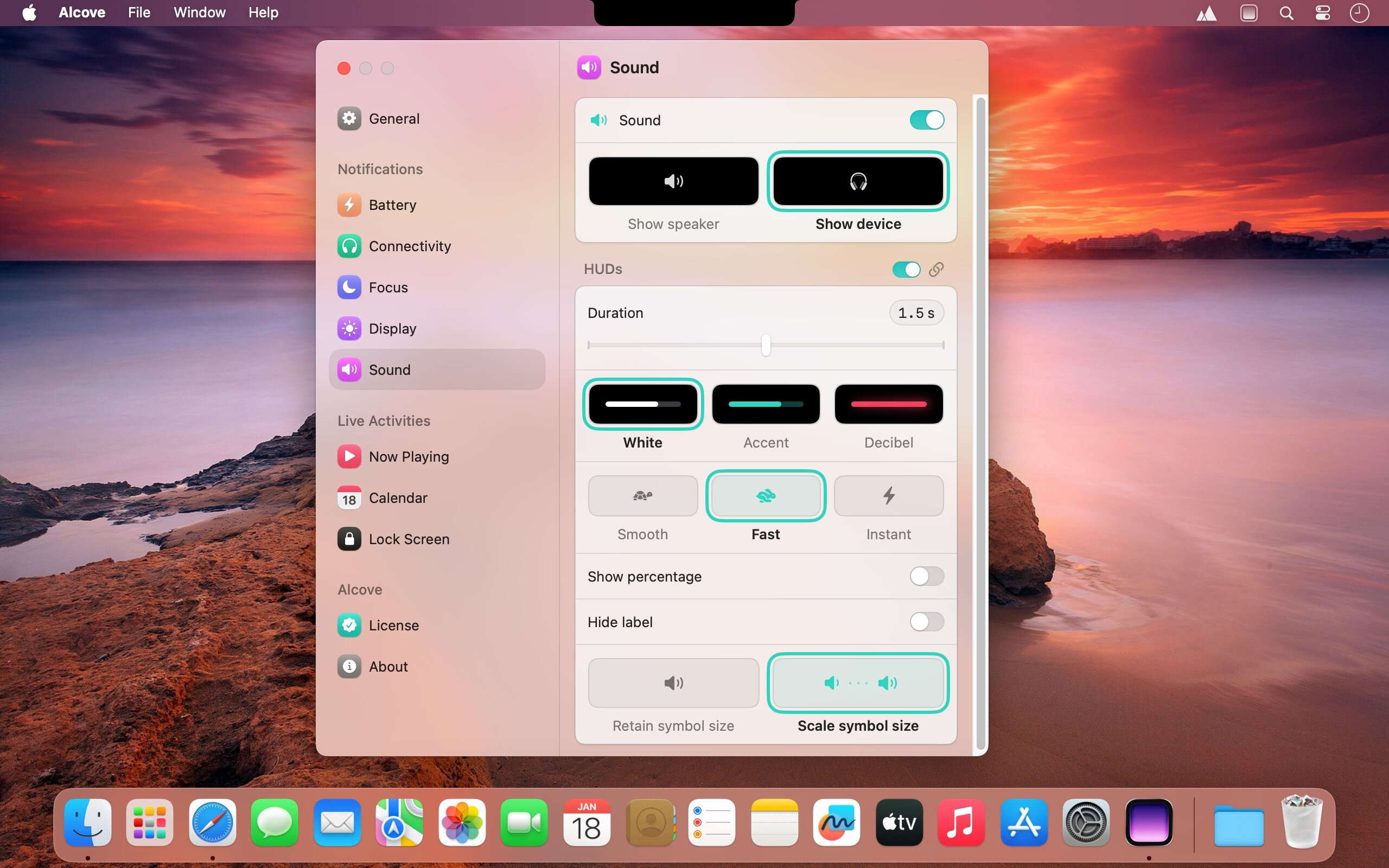 Alcove привносит элегантный интерфейс Dynamic Island в ваш Mac, преобразуя способ взаимодействия с уведомлениями, активными действиями и системными событиями. Разработанный для естественного использования, он представляет собой изысканный способ оставаться в курсе событий без прерываний.
