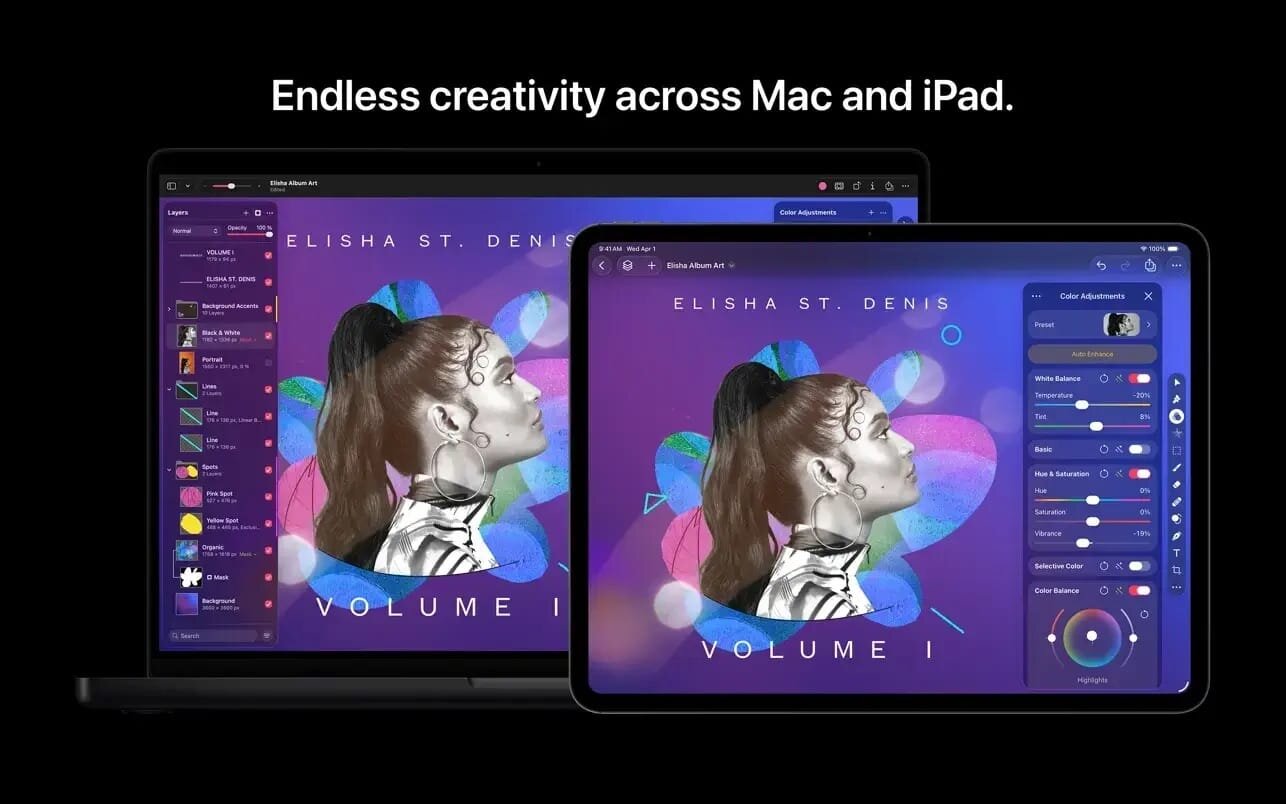 - Воспользуйтесь полной поддержкой Apple Pencil на iPad и графических планшетов на Mac, чтобы рисовать с чувствительностью к давлению и наклону.