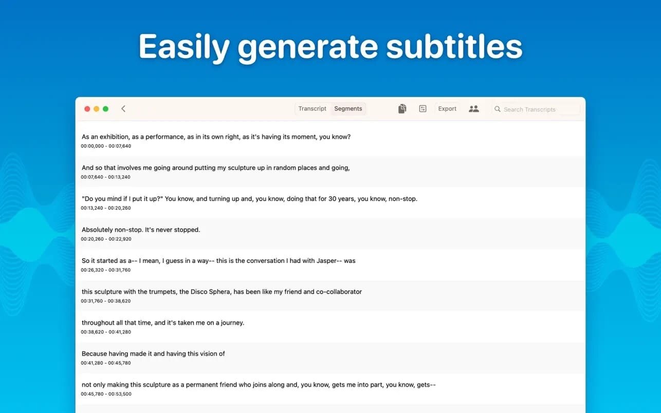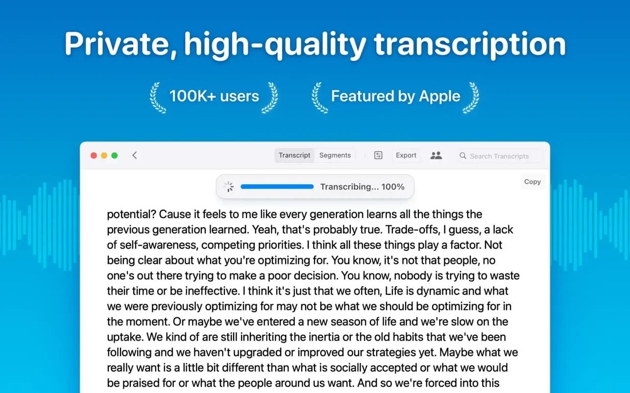 Быстро и легко преобразуйте аудиофайлы в текст с помощью передовой технологии распознавания речи Whisper. Записывайте встречи, лекции и другие важные аудио, а Whisper для Mac быстро и точно преобразует их в текст.