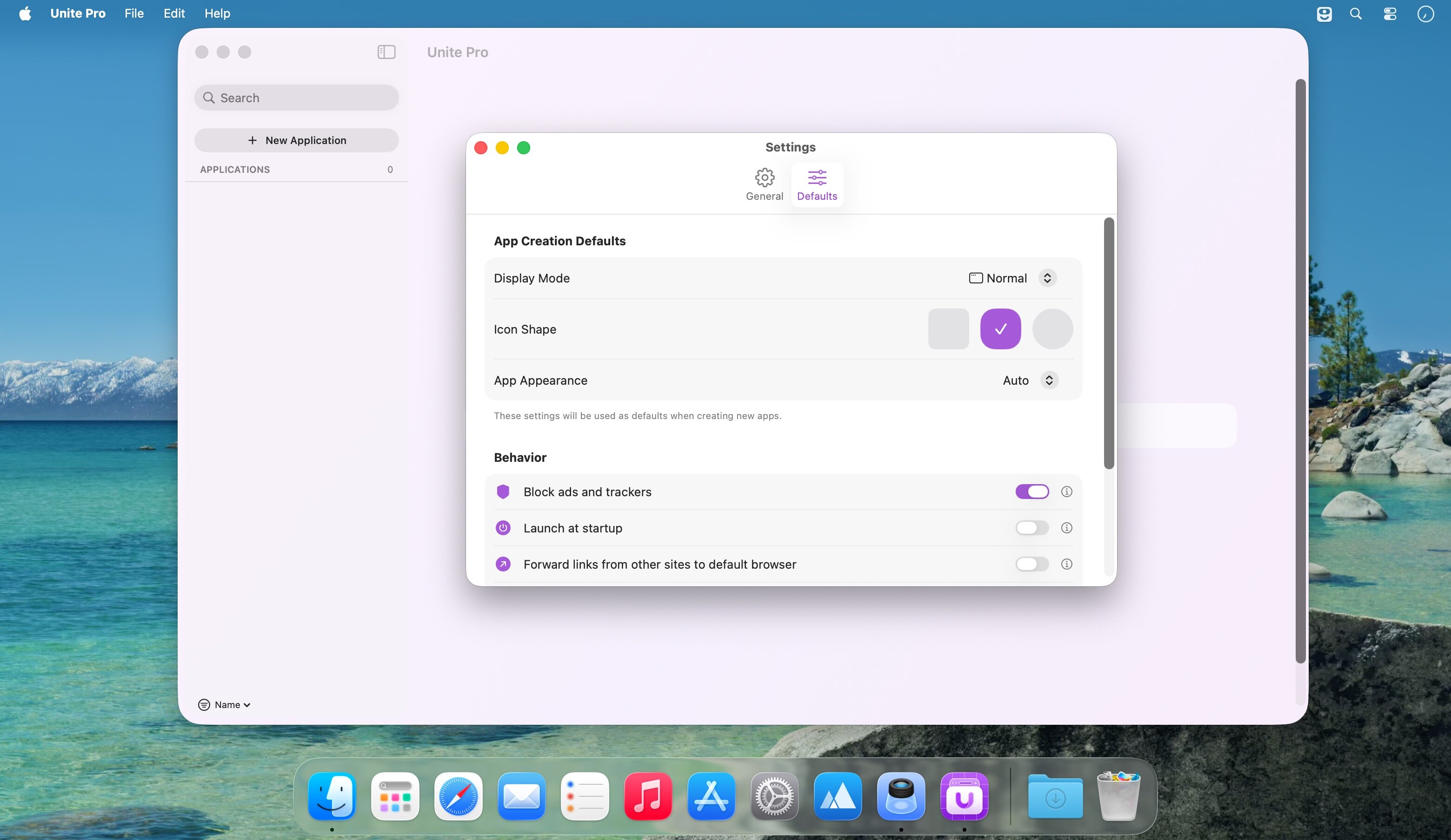 Приложения Unite легко настраиваются: показывайте или скрывайте панели заголовков, подбирайте цвета под фирменный стиль сайта, настраивайте стили окон и управляйте вкладками с помощью таких функций, как закрепление и блокировка. Выбирайте, как открываются ссылки, включайте уведомления для каждого приложения и режим Focus Mode, чтобы свести к минимуму отвлекающие факторы, а также используйте встроенные режимы — стандартные окна, боковые панели, плавающие или компактные виды и утилиты панели меню — для любого рабочего процесса.