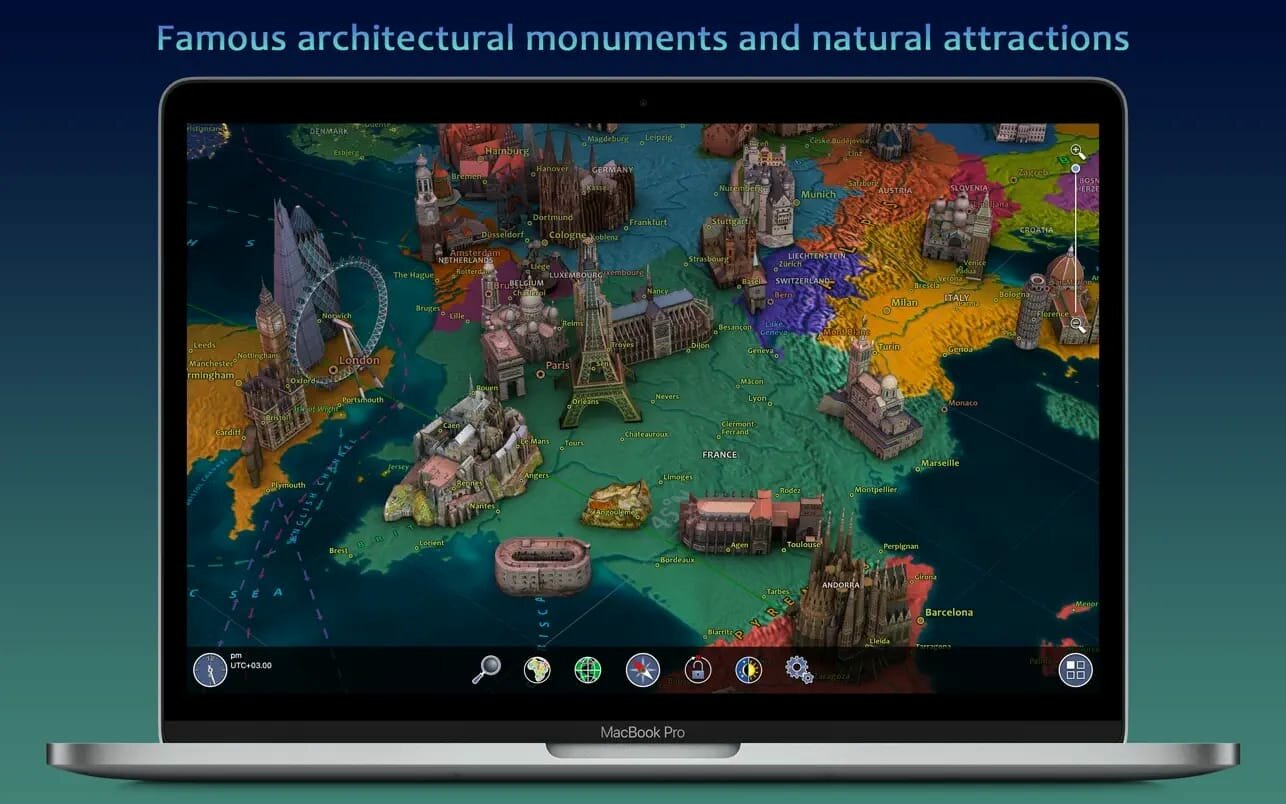 Этот интерактивный 3D-глобус содержит чудеса света, политические и физические карты, а также информацию о погоде. Откройте для себя множество увлекательных фактов и полезной информации о нашей планете! Оригинальная и красочная графика, удобный интерфейс и точная информация — вот что представляет собой Earth 3D - World Atlas!